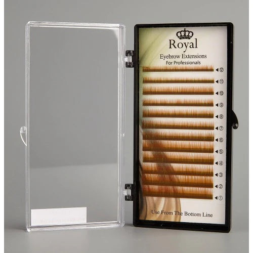 Extensii sprâncene Premium ROYAL, culoare Light Brown, Grosime 0.15 mm, Lungime Mix, 12 rânduri