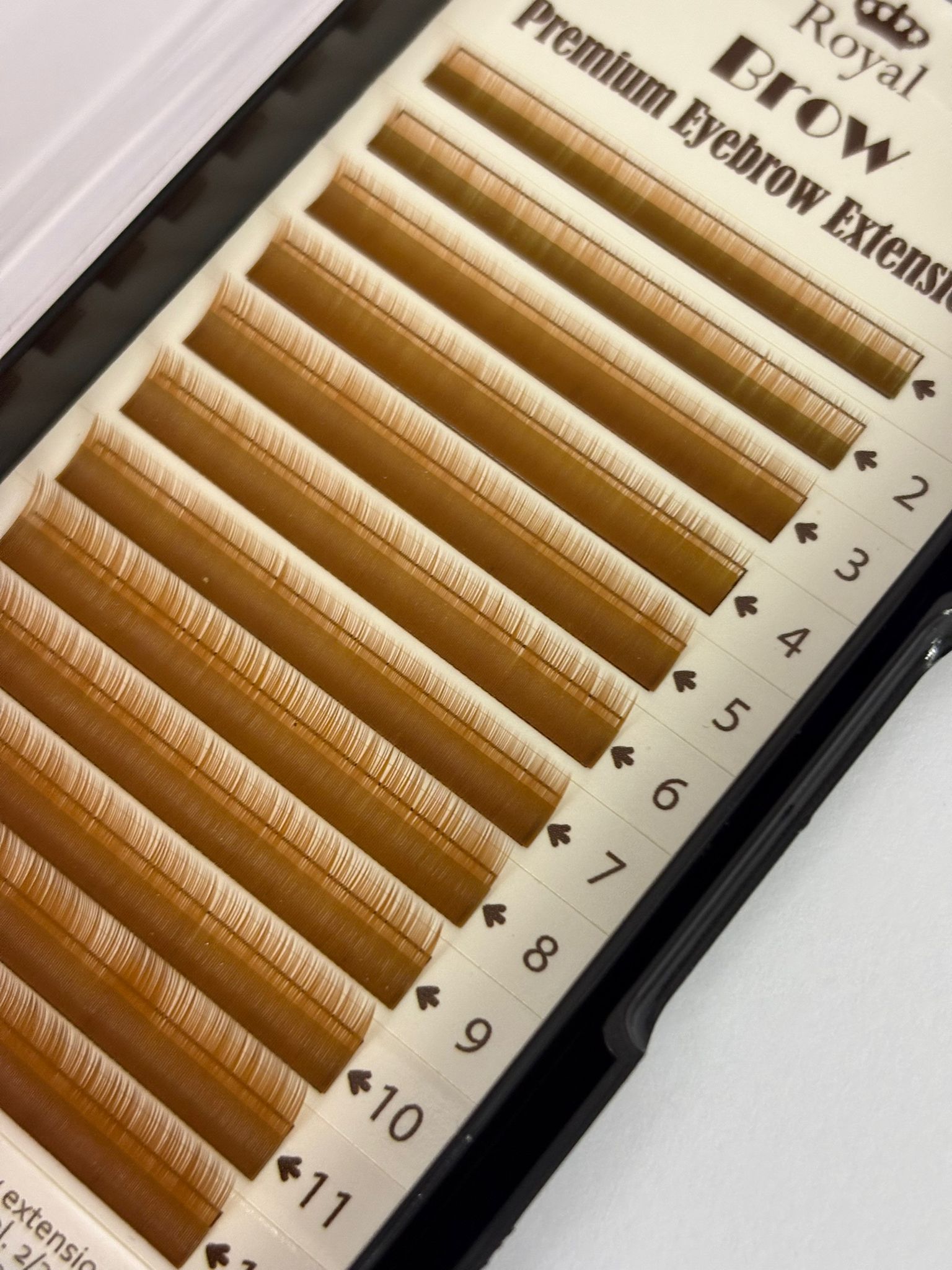 Pachet Profesional Extensii de Sprâncene ROYAL – Medium Brown 0.10 + Light Brown 0.15 + Adeziv Clear