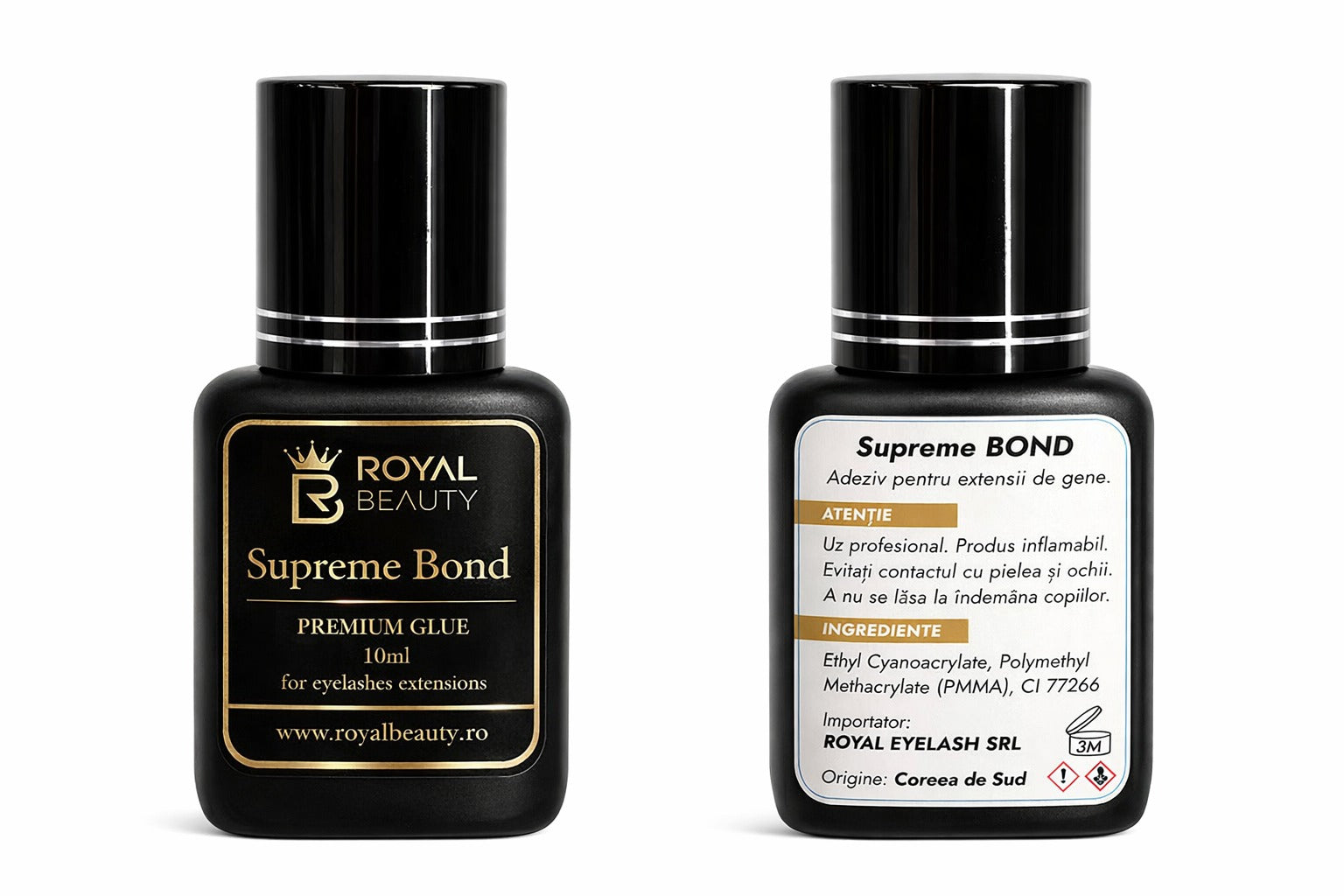 Adeziv Premium pentru extensii de gene , ROYAL Supreme Bond (black), rezistență 6-7 saptămâni, uscare 1-2 secunde, 10 ml
