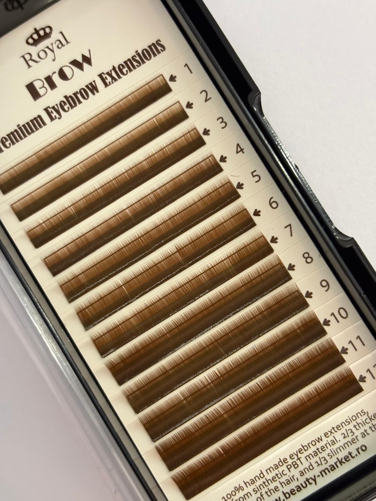 Extensii sprâncene Premium ROYAL, culoare Medium Brown, Grosime 0.10 mm, Lungime Mix, 12 rânduri