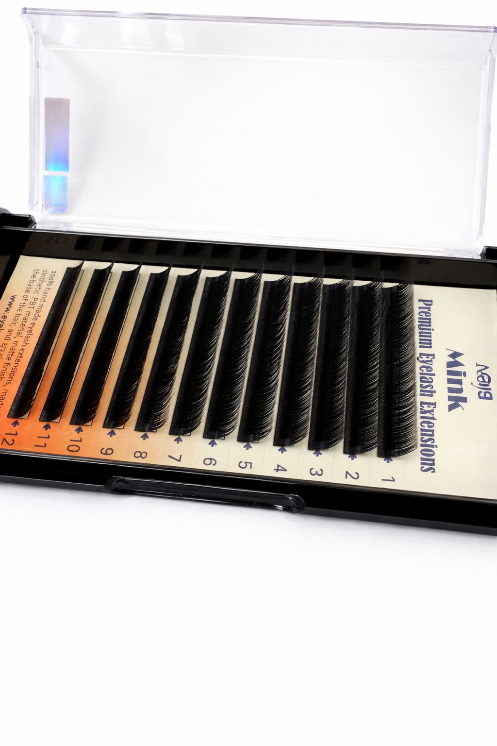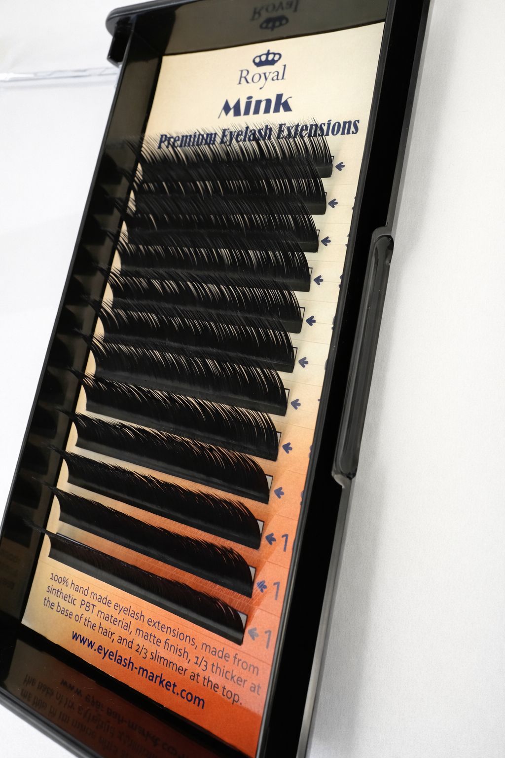 Extensii de gene Premium ROYAL Mink, Curbură M, Lungime 9-14 mm, Grosime 0.12 mm, 12 rânduri