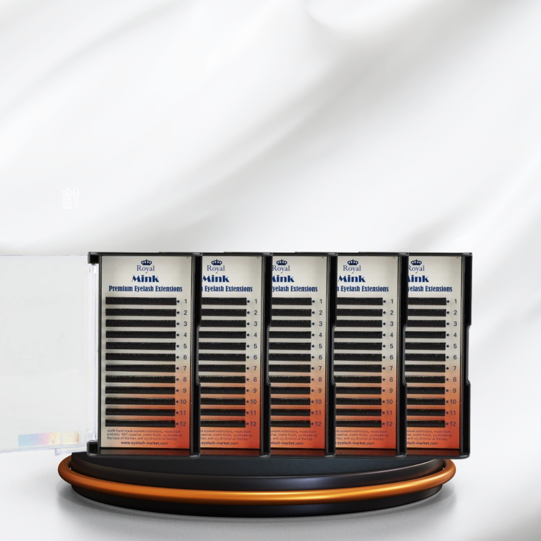 Pachet profesional cu 5 cutii de extensii de gene Royal Mink CC 0.10, în lungimile 7 mm, 8 mm, 9 mm, 10 mm și 11 mm. Fibre moi, ușoare și foarte flexibile, ideale pentru seturi naturale sau volume light. Rândurile se desprind ușor, nu lasă reziduuri și permit o aplicare rapidă și precisă. Recomandate tehnicienilor care caută calitate constantă și rezultate curate.